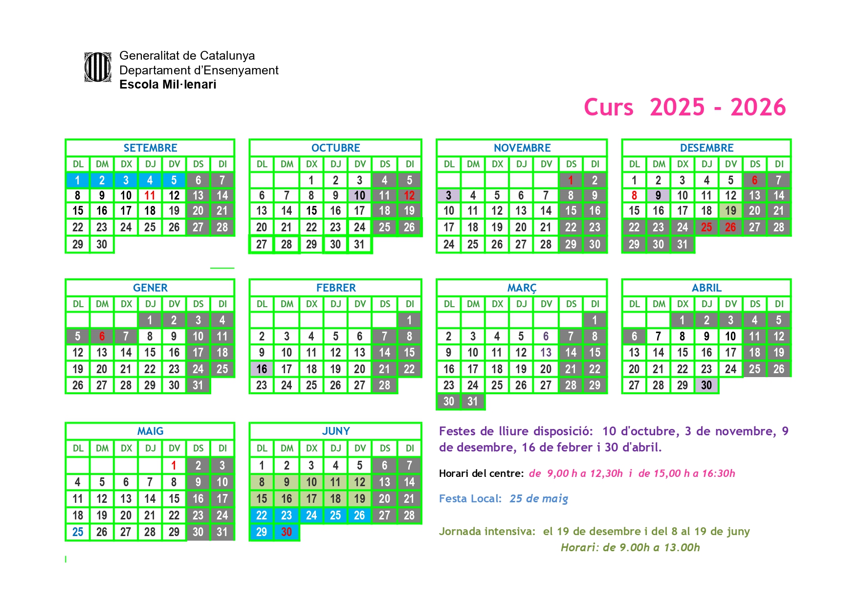 Matins del 25 de juny al 3 de juliol de 2025. Cal demanar cita prèvia trucant a l’escola (93.8711667)