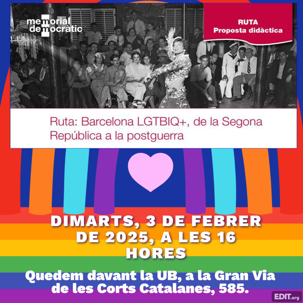 L’alumnat del GES i el professorat assistiran el 3 de febrer a la ruta LGTBI que organitza el Memorial Democràtic. Tot l’alumnat del centre podrà assistir, consulteu a consergeria.