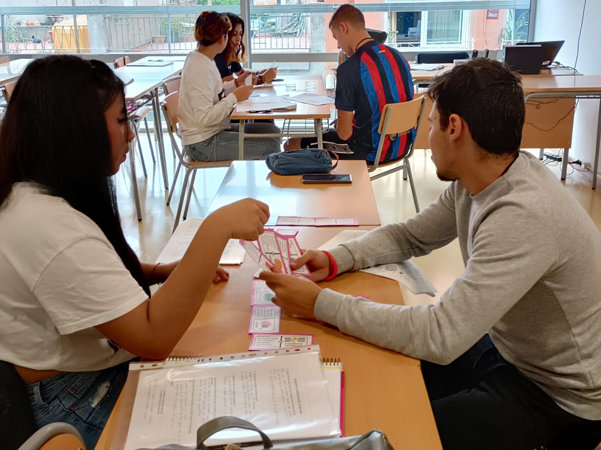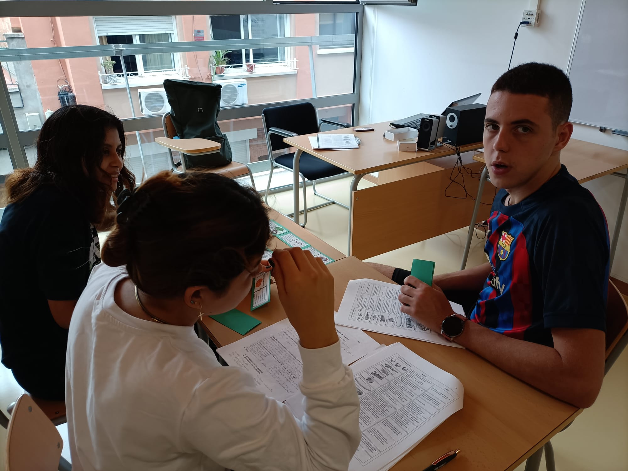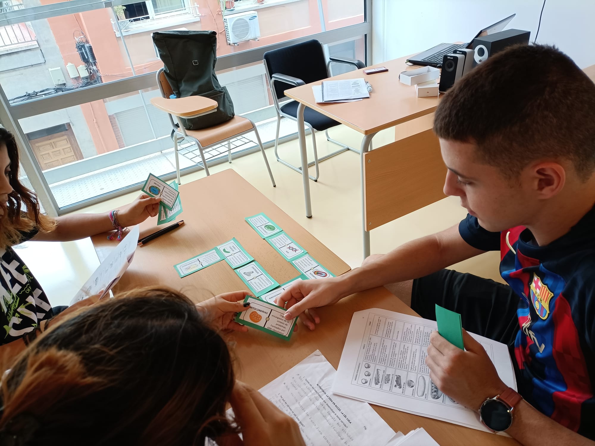 - Per torns, cada persona del grup ha anat descartant-se amb una carta que coincidia amb l’última definició o l’últim dibuix que hi havia a la taula.