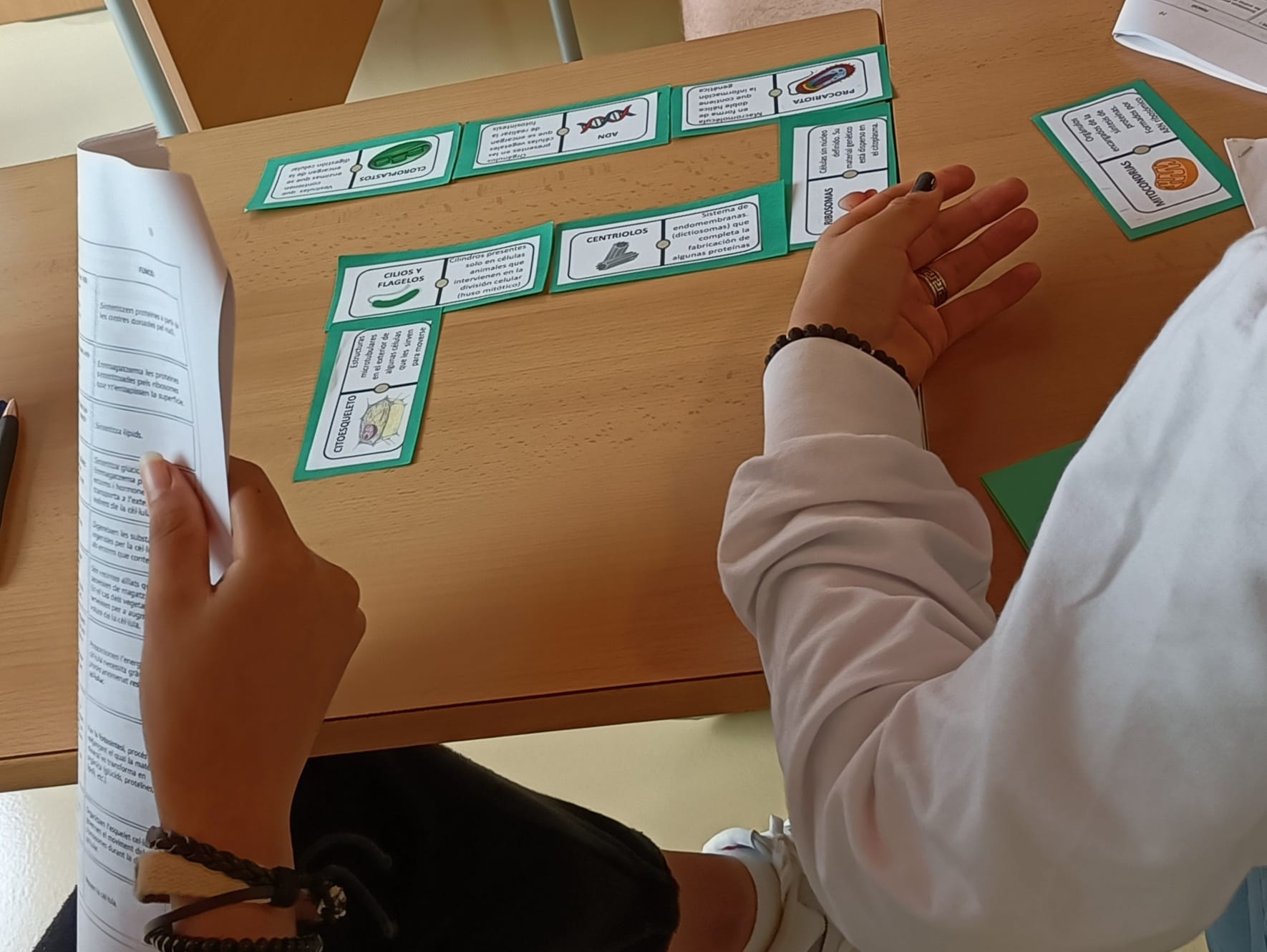 Aquesta setmana hem practicat amb l’alumnat de GES 1 les diferents parts de la cèl·lula i els orgànuls cel·lulars. Partint d’un recurs publicat al blog de La RuBisCo es lo más hem jugat a associar definicions amb dibuixos de la cèl·lula. La dinàmica que hem seguit és la d’un dominó de cartes: