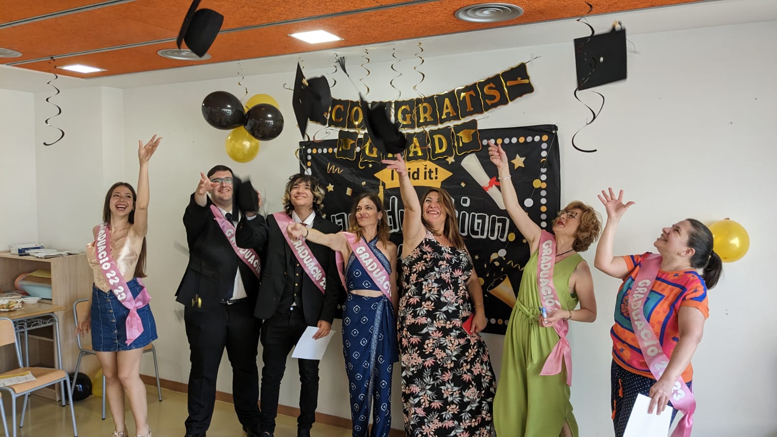 Ahir vam celebrar la festa de cloenda del curs al centre. Alumnat i professorat ens vam unir per recordar tots els moments inoblidables que hem compartit durant aquest curs. La festa d’aquest any va començar amb una emotiva cerimònia de graduació amb l’alumnat del GES. Després, tots els estudiants dels diferents ensenyaments es van reunir per a fer una festa conjunta. Durant la trobada, vam passar una molt bona estona, rememorant anècdotes del curs que ara s’acaba i degustant les delícies que ens van portar els companys.