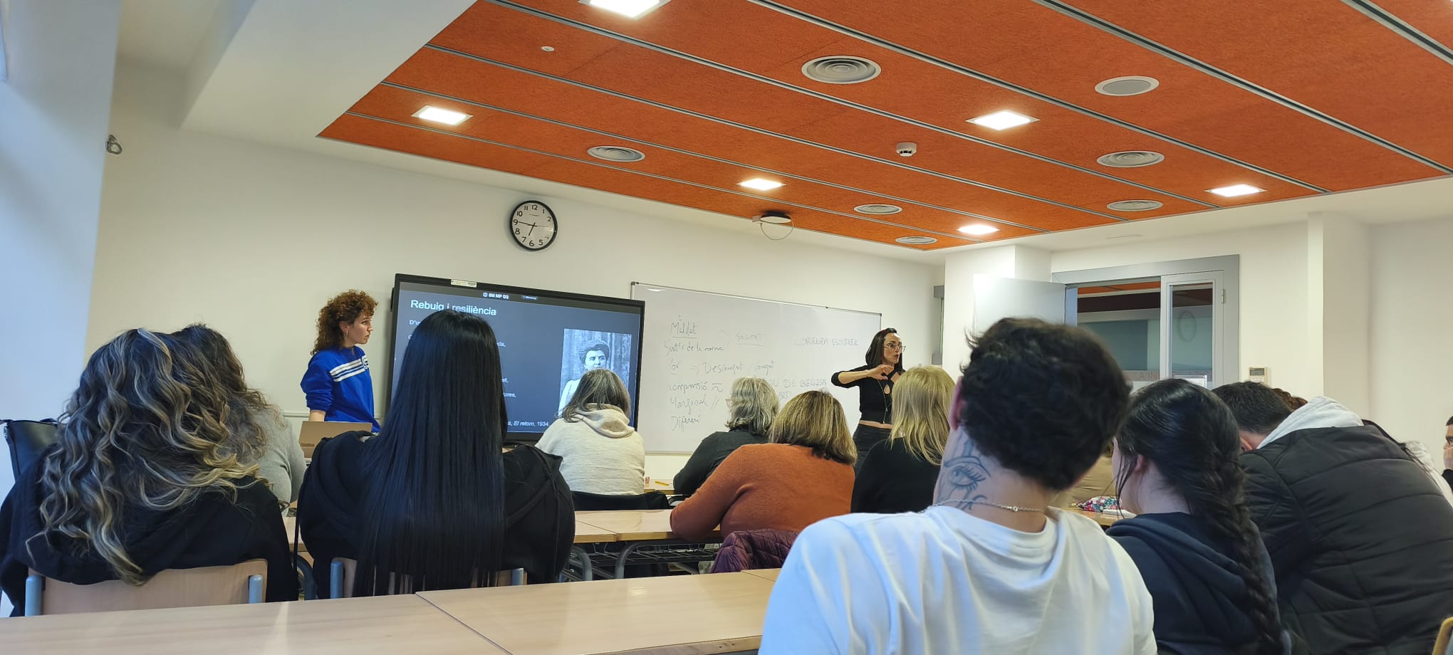 La setmana passada, l’alumnat de GES va poder gaudir del taller “Fúries, monstres i altres bèsties” que presentaven les poetes Maria Sevilla i Raquel Santanera. Es tracta d’una activitat de “Clàssics en veu alta”, dins el projecte “Lletres a les aules” de la Institució de les Lletres Catalanes i del Departament d’Educació i FP.