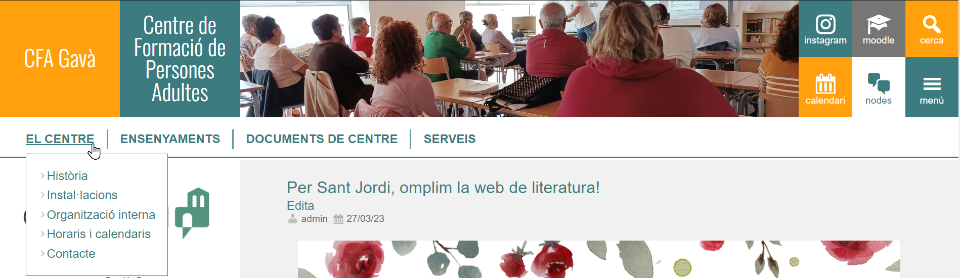 A través del nou menú tindreu accés a tota la informació sobre el nostre centre, els nostres ensenyaments i oferta formativa, als documents estratègics i a altres serveis que oferim, només passant el ratolí per sobre. El menú només està disponible quan entreu amb el vostre ordinador a la pàgina principal, no us afectarà si entreu a través del mòbil ni a la resta de pàgines de la web.