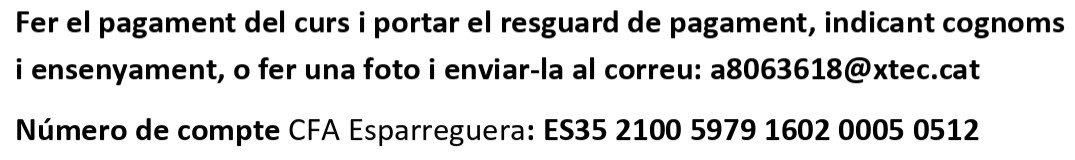 Dades pagament – CFA Esparreguera admin09/09/25 Per a confirmar la teva plaça a un ensenyament has de:
