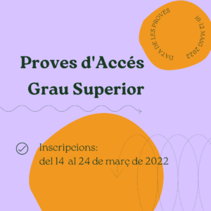 | GRAU SUPERIOR | Inscripció: del 14 (a partir de les 9 h) al 24 de març de 2022. Vés a l’aplicació informàtica.