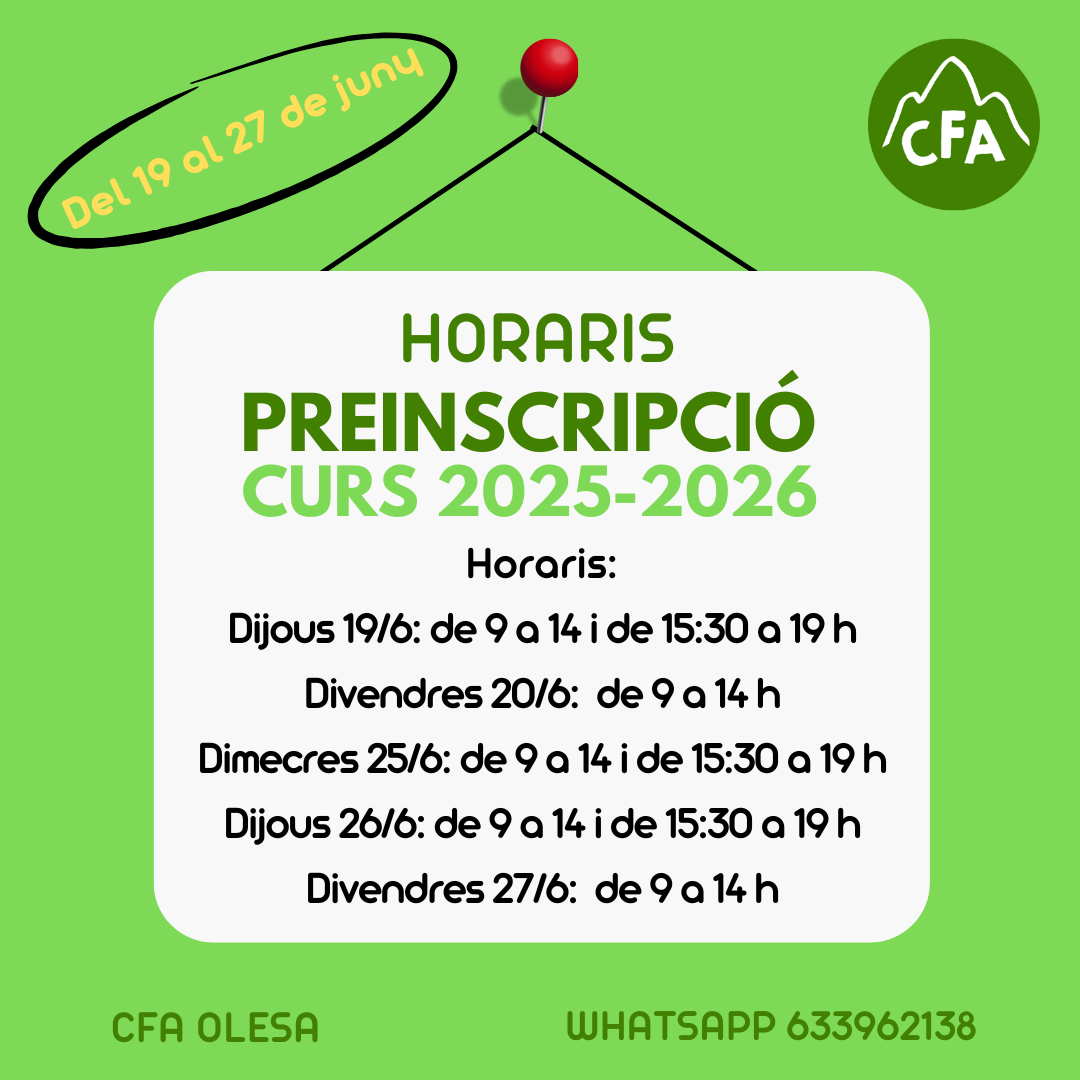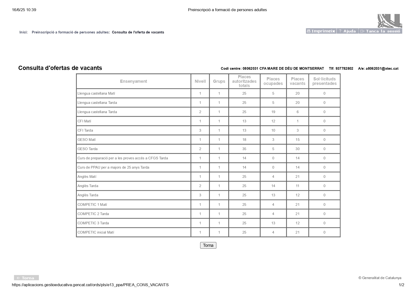 16/07/25Podeu consultar aquí la llista d’espera per al curs 2025-26, publicada el 16 de juliol.