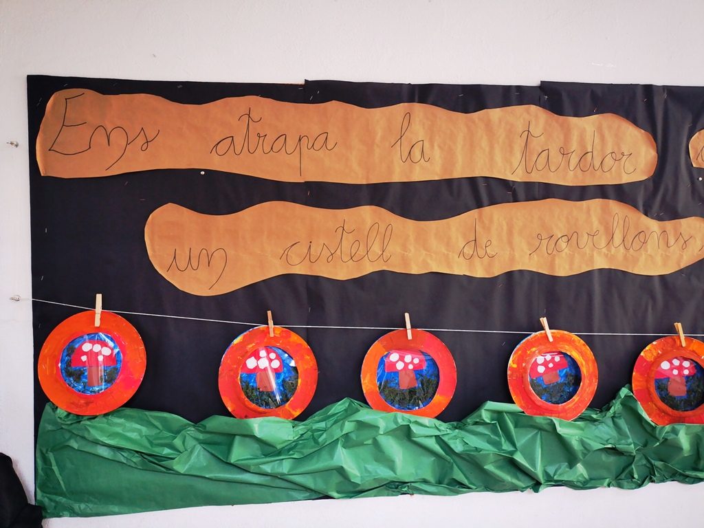 Les fulles cauen dels arbres, els boscos s’omplen de bolets, els dies es van fent cada dia més curts, el canvi d’hora, l’olor de castanyes i moniato i aquesta tonalitat groguenca que marca el paisatge. La tardor ha arribat a l’escola i, les alumnes i els alumnes de primer, han realitzat un seguit d’activitats per decorar l’escola i comprendre aquesta època de l’any.