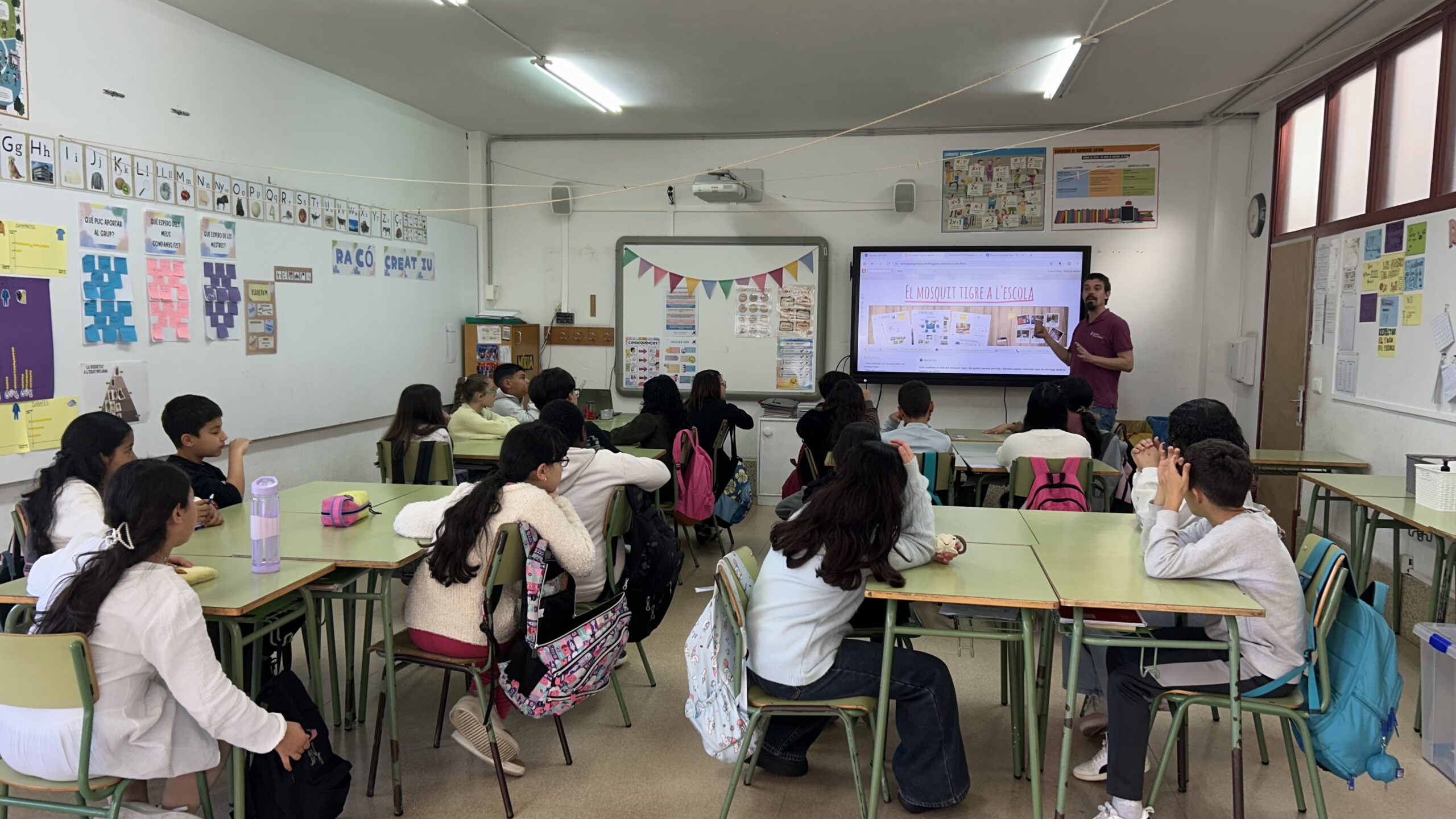 El passat 25 de març, els alumnes de 5è van tenir l’oportunitat de gaudir d’una xerrada sobre el mosquit tigre. Durant la sessió, van aprendre què és aquesta espècie invasora, d’on prové i com s’ha anat estenent en el nostre entorn.