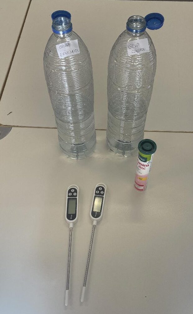 Hem utilitzat dues ampolles d’aigua, dos termòmetres i pastilles efervescents per simular la contaminació atmosfèrica. D’aquesta manera, hem pogut… Llegeix més»