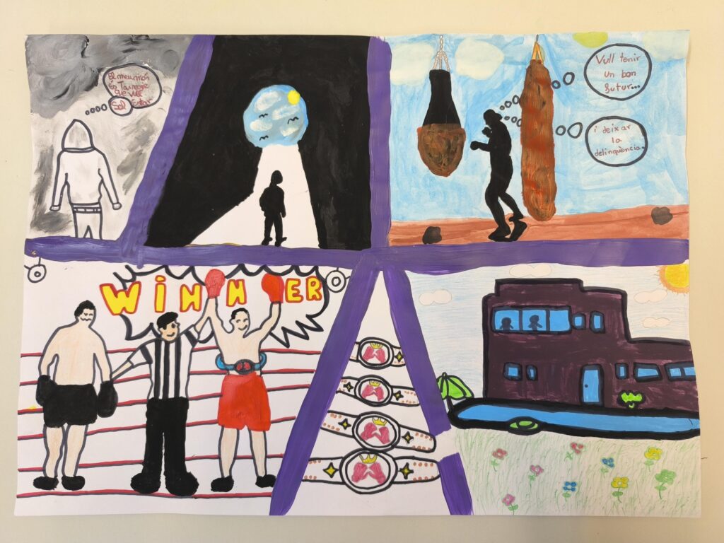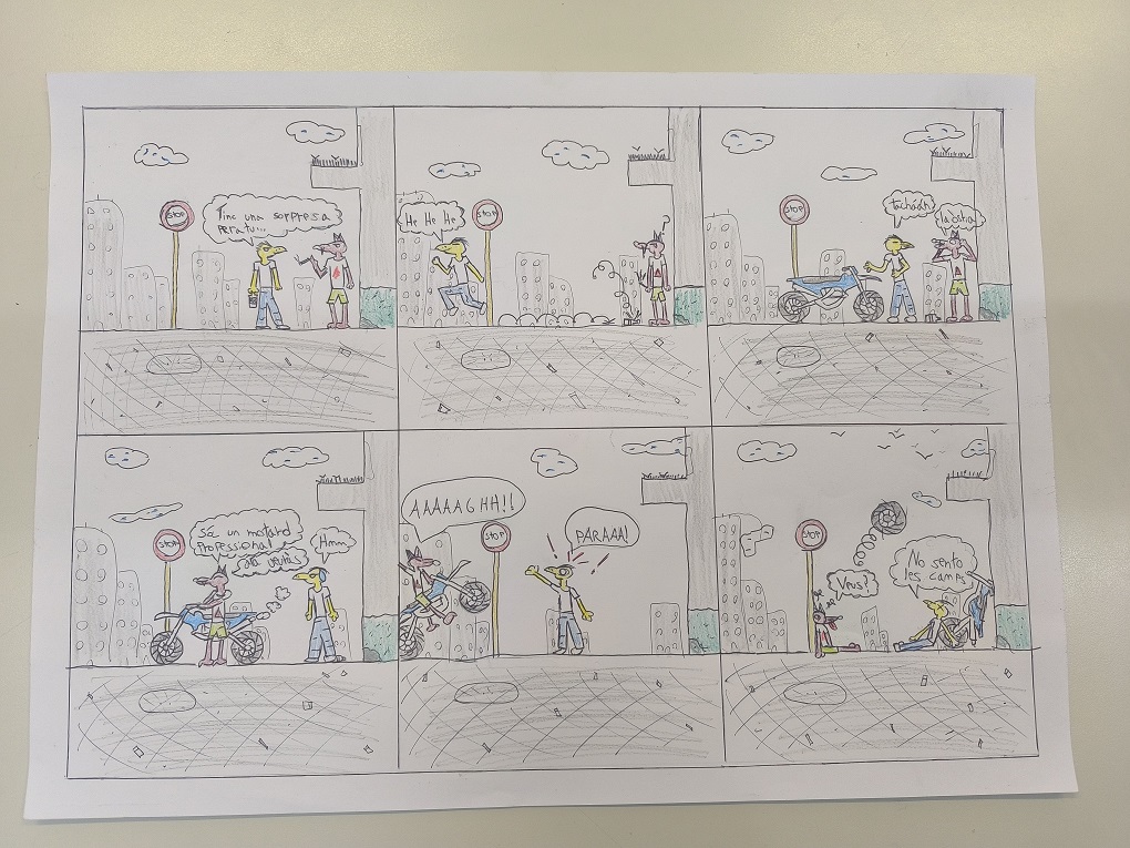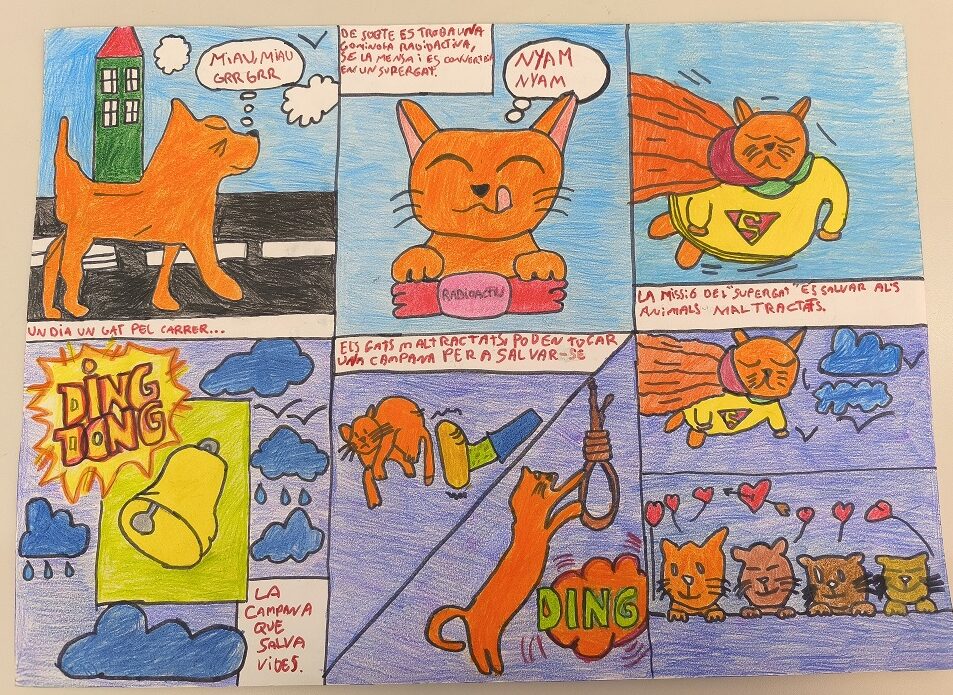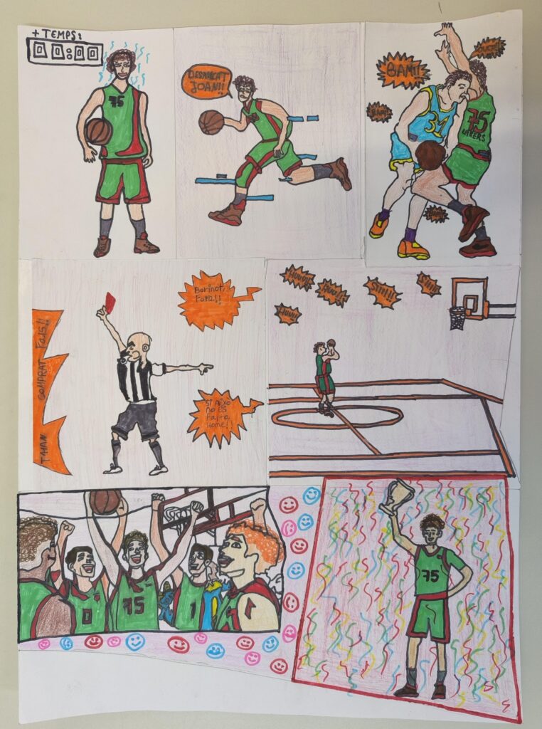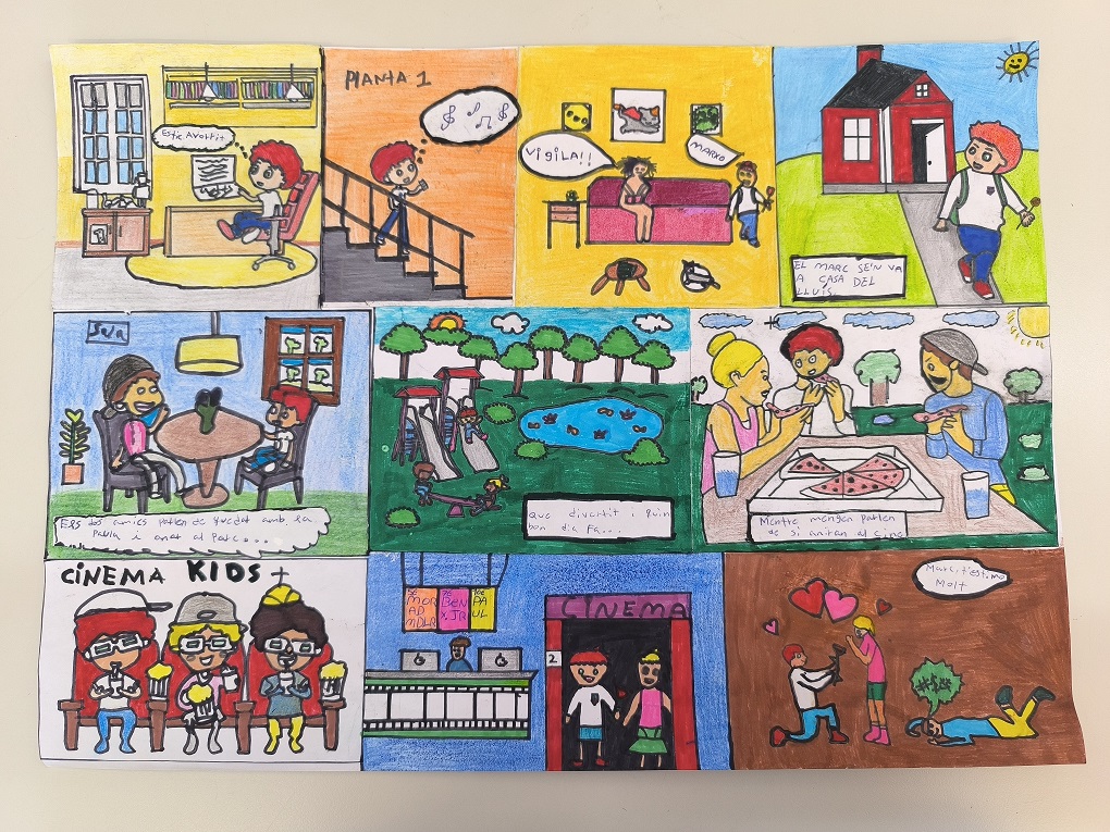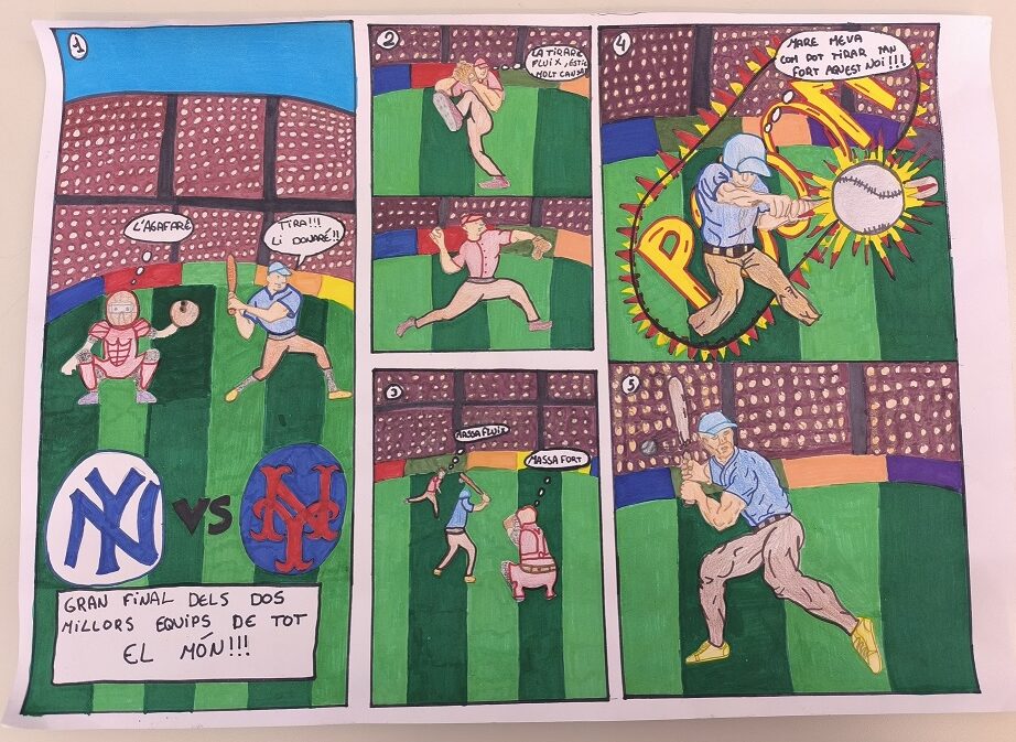 Aquest trimestre com a segon projecte a la classe de llengua, hem realitzat una activitat creativa amb els alumnes en què han tingut l’oportunitat de treballar el còmic. L’objectiu d’aquesta activitat ha estat fomentar la imaginació, millorar les habilitats de narració i donar als joves eines per expressar-se mitjançant el dibuix.