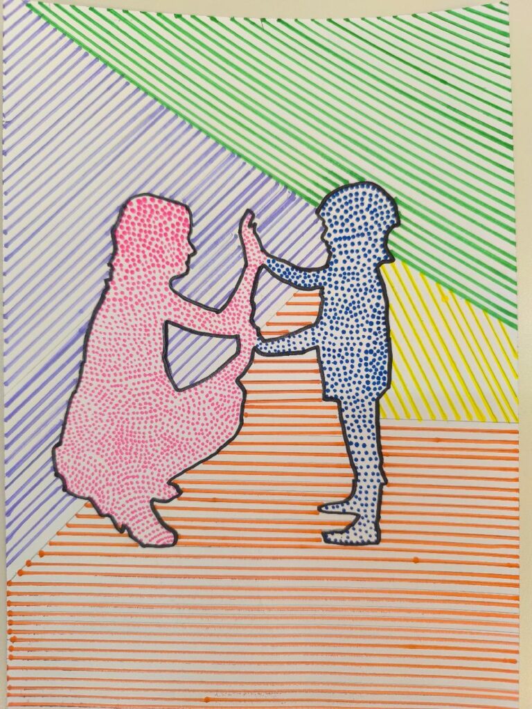 3. Omplir el dibuix amb punts, ratlles o amb les dues tècniques.