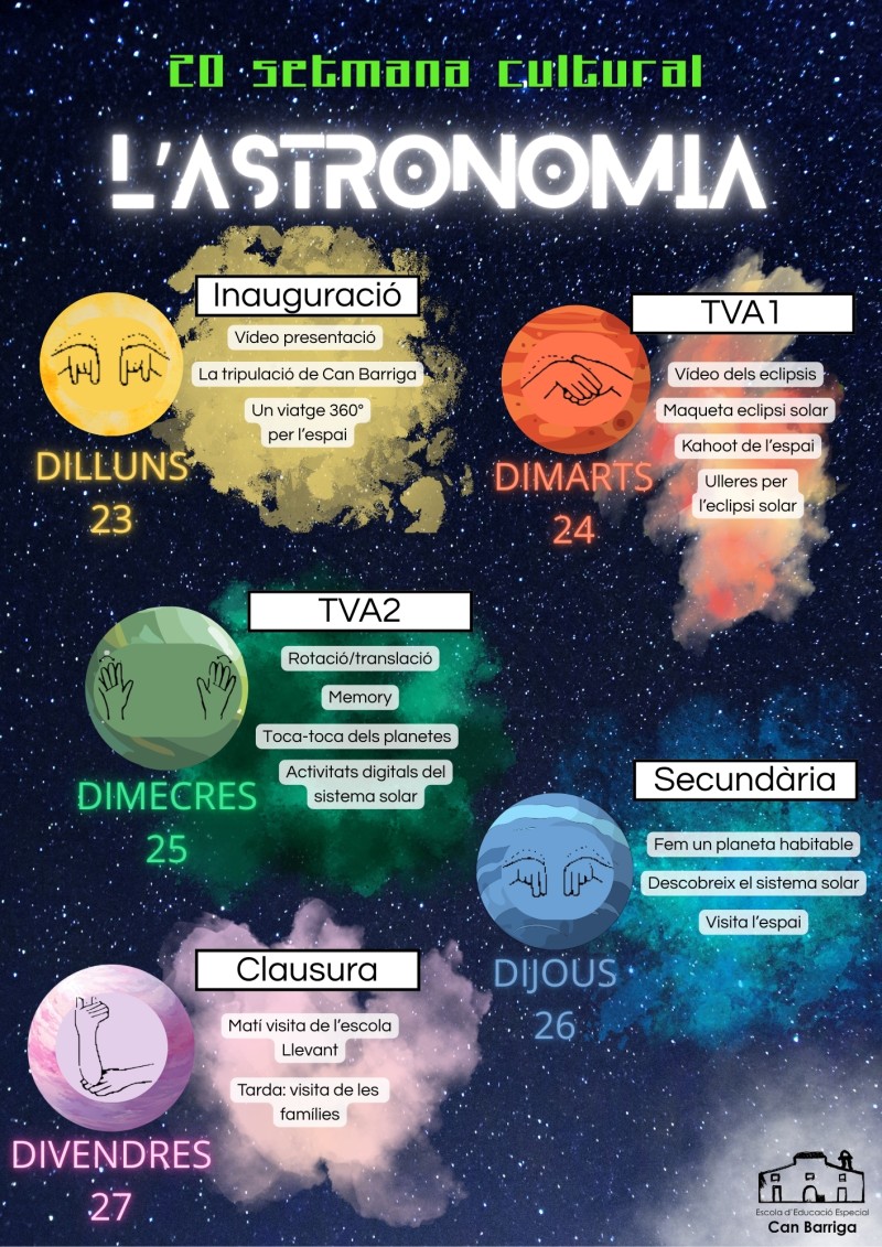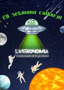 Com cada any l’última setmana del segon trimestre celebrem la Setmana Cultural. Aquest any, celebrarem la 20 Setmana Cultural i el tema central és L’ASTRONOMIA.
