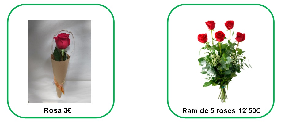 Aquest any es farà la paradeta a la porta de l’escola el dia 23 d’abril i també us fem arribar aquest full de comanda perquè pugueu demanar abans les roses que necessiteu. Us oferim la possibilitat de demanar una rosa o un ram de roses (mínim 5 roses, a 2,50€ la rosa).