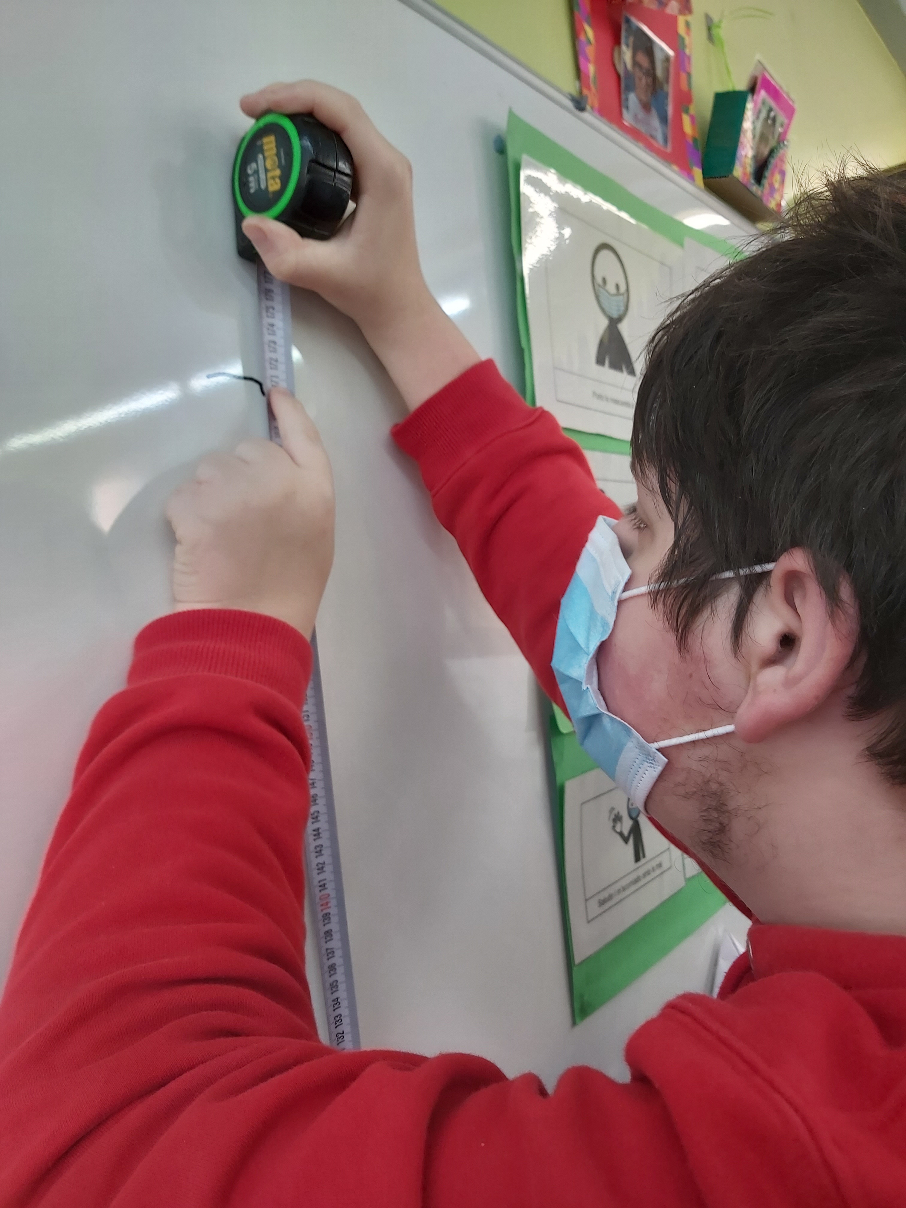 Avui ens hem mesurat l’alçada. El més alt és en Fabián amb 1’89m i la més baixeta és la Cristina amb 1’54m. Al mig estem el Pau (1’71m), l’Arià (1’70m), en Kevin (1’65m), l’Ari (1’61m), la Laia (1’58m) i en Yassin (1’57m).