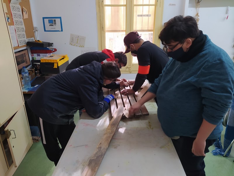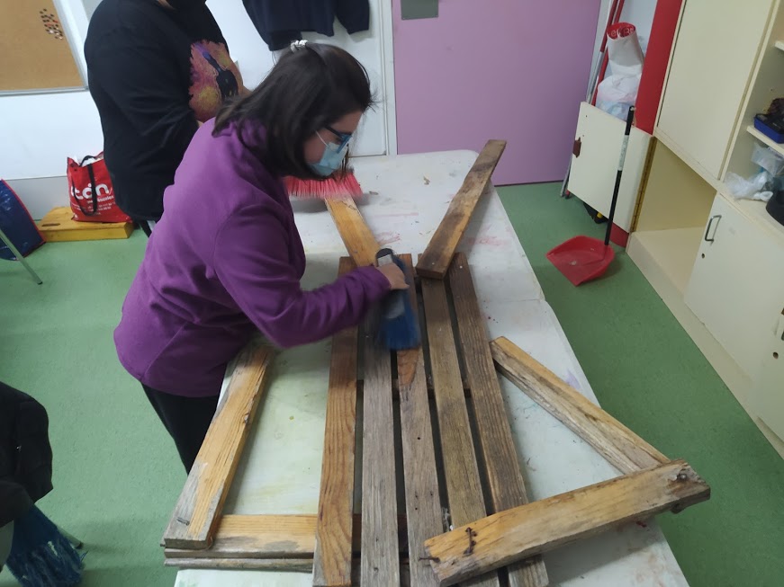 Per començar amb el treball, vam tallar els trossos de fusta podrida i els vam reemplaç per uns de nous.