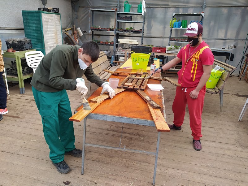 Per finalitzar, el grup d’hort i l’aula C vam fer una col·laboració per pintar-lo de color groc amb detalls en verd per acabar de deixar-lo ben bonic.