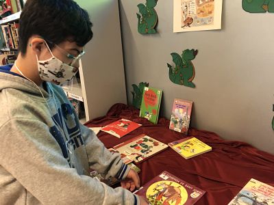 Vam estar una bona estona mirant contes i després ens vam apropar a l’exposició de Sant Jordi.