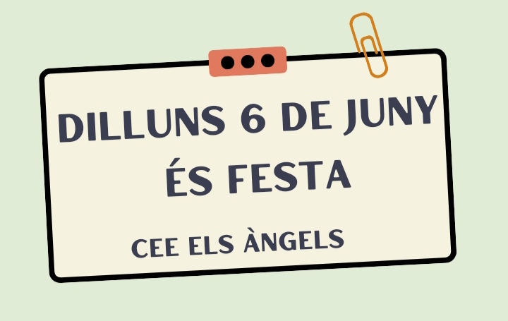 Hola a tothom! Recordeu que el dilluns 6 de juny és festa.