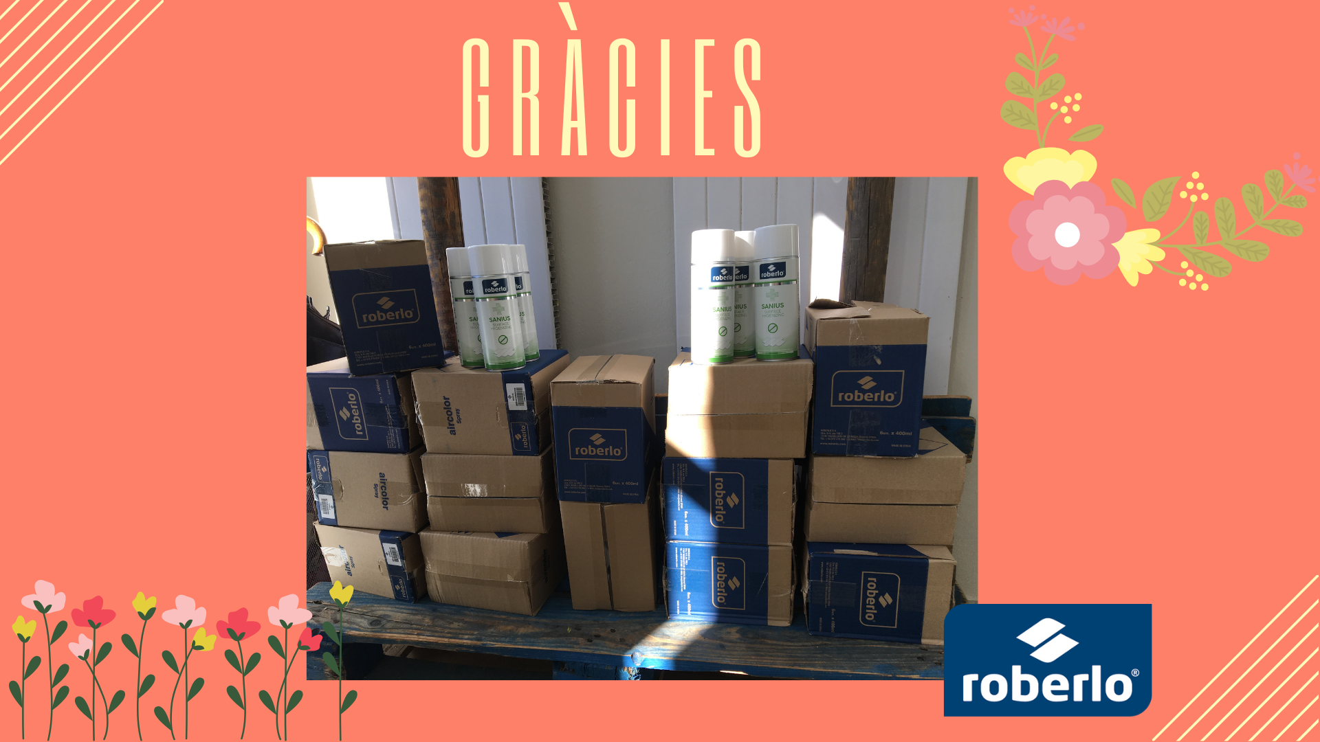 Volem donar les gràcies i el nostre agraïment a l’empresa Roberlo la qual ha fet una donació a l’escola de 90 unitats de Sanium. Aquest producte ens permet desinfectar i netejar tota mena de superfícies de la nostra escola. Estem molt contentes per la donació i molt agraïdes per la solidaritat que ha mostrat Roberlo amb nosaltres, aquest  producte ens serà molt útil en aquests moments on la seguretat és el més important!