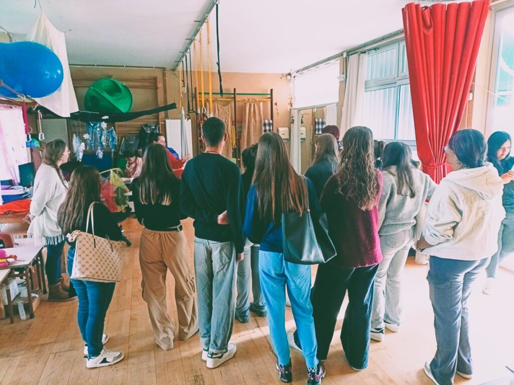 Ja fa molts anys que el CEE-CEEPSIR Els Àngels acull alumnat en fase de pràctiques. Ahir tot el grup de primer curs de CFGM APD va fer-nos una visita per conèixer la nostra escola. Van poder descobrir com es treballa a la nostra escola, els espais amb els que comptem, van escoltar l’experiència de les persones que estan desenvolupant les seves pràctiques enguany i van poder respondre a moltes de les seves curiositats!