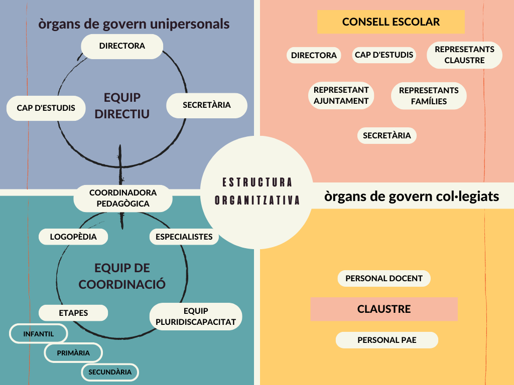 Com a escola pública ens organitzem per etapes tenint en compte de forma orientativa l’edat cronològica de l’alumnat que correspon a cada una de les etapes educatives (infantil, primària i secundària).