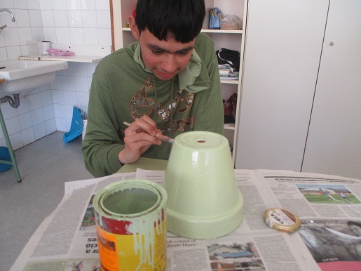 El grup C està fent testos d’Àloe Vera pintats de colors. Són molt bonics i han tingut molt èxit. Els alumnes volen reunir diners pel viatge de fi de curs. Hem pintat tots els testos de colors i hem posat unes cares molt divertides. Finalment les hem plantat.