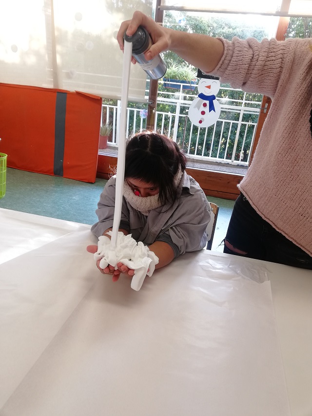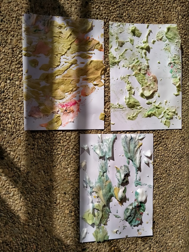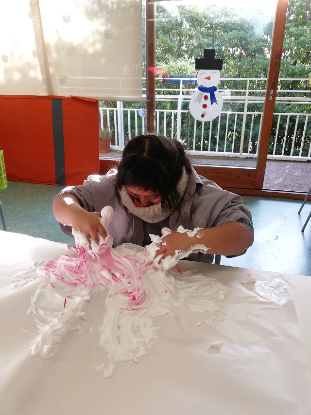 Avui el grup de TVA4 ens ho hem passat molt bé experimentant amb l’escuma. L’hem manipulat, l’hem pintat de diferents colors, hem fet estampació i, també, una guerra. Ho hem passat genial, però… l’aula ha quedat brutíssima!!! Sort que som molt treballadores i ens agrada molt netejar.
