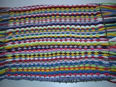 Durant el primer trimestre els alumnes de TVA1 hem fet un mantell individual de trapillo amb un tapís fet amb cartró i llana. Tot ha estat fet amb material reaprofitat, doncs el trapillo el vam fer de samarretes de cotó velles que vam portar de casa. La tècnica és passar el trapillo per la trama de llana tot comptant “un si i un no” i així successivament.