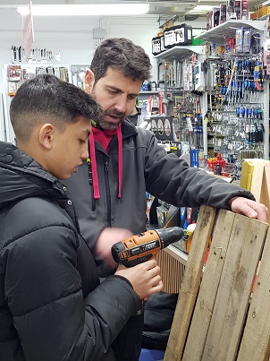 L’Albert ens ha ensenyat a fer un duplicat d´una clau i a clavar cargols a una fusta amb un tornavís elèctric.