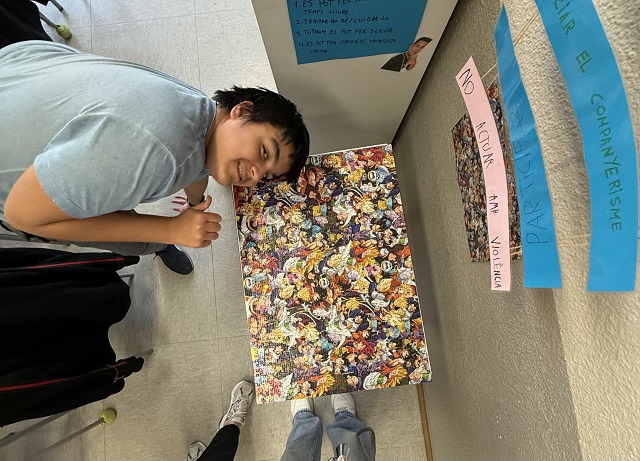 Fa tres setmanes el Grup C va acabar un puzzle de Dragon Ball Super. Aquest puzzle té 1000 peces i hi surten tots els personatges. El puzzle l’hem fet entre tota la classe i el tenim exposat a una taula dins l’aula. També, al segon trimestre vam fer un altre puzzle de mascotes. Aquest puzzle té cinc-centes peces i el tenim muntat a sobre d’un armari perquè no es faci malbé.