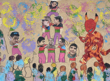 Per acabar aquest treball, hem fet un mural sobre la Mercè on surten tots els elements que hem treballat i també les nostres cares!