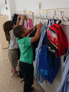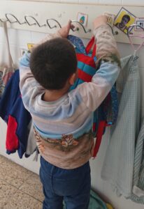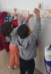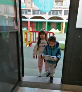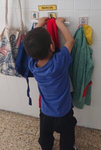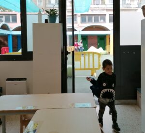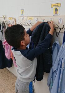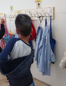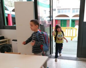 A les 9:30 els infants van arribant a poc a poc a l’escola, ens saludem i els infants van deixant les seves pertinences en el seu penjador. Treuen el seu esmorzar i el deixen a la seva safata.