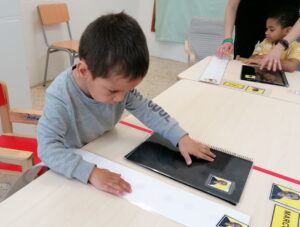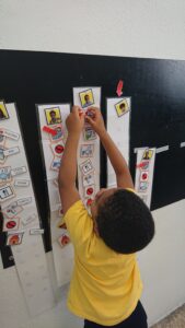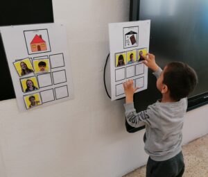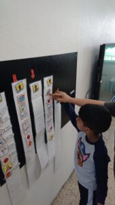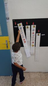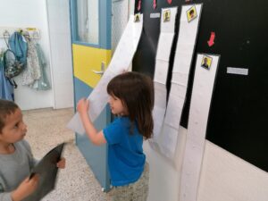 Els alumnes cada matí agafen la seva fotografia i la posen al plafó de l’escola.