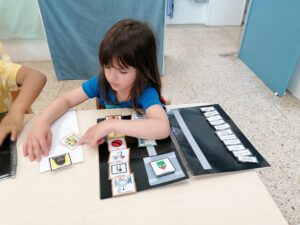 Seguidament, cada alumne agafa la seva llibreta i la seva tira per crear el seu propi horari del dia.