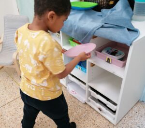 Cada matí anem a buscar els plats nets per l’esmorzar a la cuina. Quan els portem els classifiquem en cada guixeta. Entre tots ens ajudem.