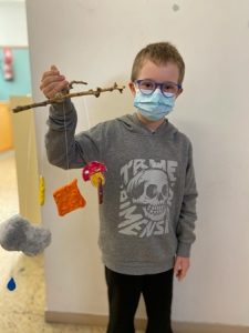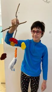 Hem decorat amb moniatos i magranes el photocall de la Castanyada i també hem fet un mòbil amb bolets, núvols i fulles de pasta de sal.