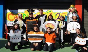 Va ser una festa molt divertida on cadascun del grups de l’escola anava disfressat acord amb la temàtica de la coreografia que havien preparat. Cada grup d’infantil i primària es va disfressar del país que representa la seva aula i que s’engloba dins del projecte de “Les cases del món”. Els grups de secundària és van disfressar de la pel·lícula Grease.