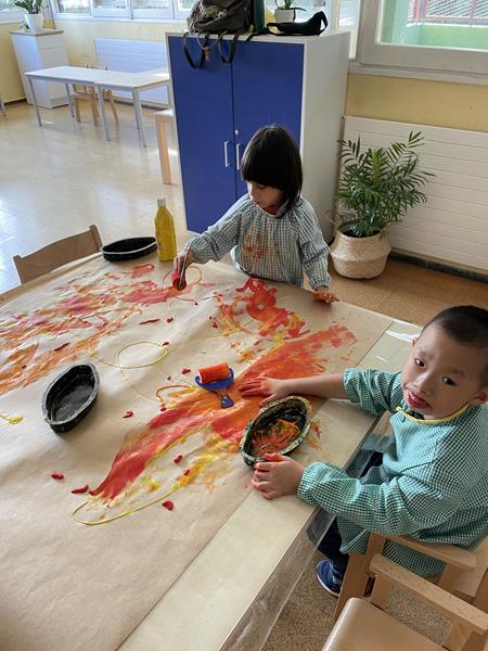 Hem decorat el passadís amb els colors i fruits de la tardor. Estem experimentant l’olor, el tacte i el gust dels fruits d’aquesta estació. I a més, ens agrada molt escoltar i ballar les cançons típiques…