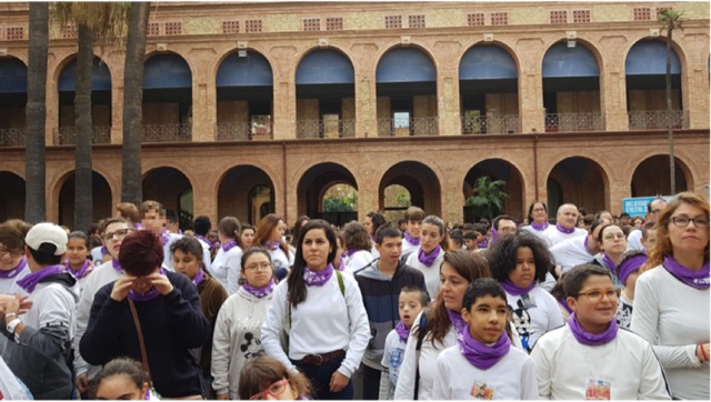 Avui  s’ha fet un acte commemoratiu a les 11 h al Pati de la Seu del Districte, amb el ball conjunt, amb coreografia inclosa i música de Macaco i Els Catarres. Amb la participació d’escoles,centres ocupacionals, entitats de persones discapacitades….Entre tots ells estavèm nosaltres!