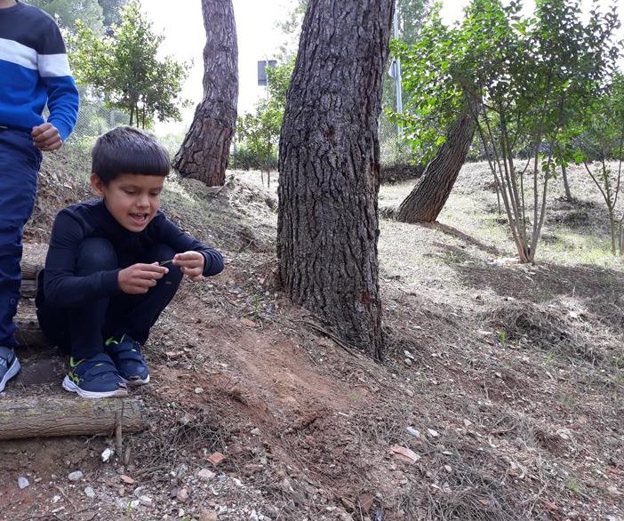 Amb el bon temps el grup 2 hem decidit sortir a gaudir del jardí de l’escola. Ens ho passem molt bé ja que podem còrrer, sentir i tocar les plantes i fulles del jardí. Amb la sorra i les pedretes tambè gaudim molt, acabem amb les mans ben brutes!!