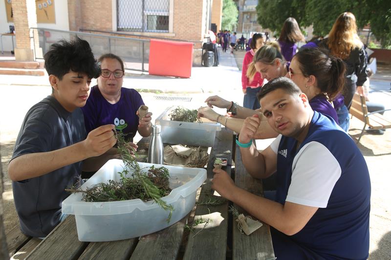 A primera hora vam donar la benvinguda a les famílies, i van poder passejar per totes les aules i els espais del centre, mentre l’alumnat estava al pati fent activitats sensorials relacionades amb les plantes aromàtiques.