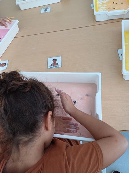Som el Juan, la Tamara, el Hassan, la Nagore i l’Ayyan, del Grup 5. Ens agrada molt explorar i manipular amb diferents materials i textures. Experimentem diferents sensacions a través dels nostres sentits. Olorem, toquem i provem. Que bé ens ho passem!