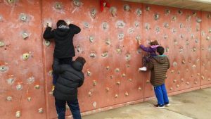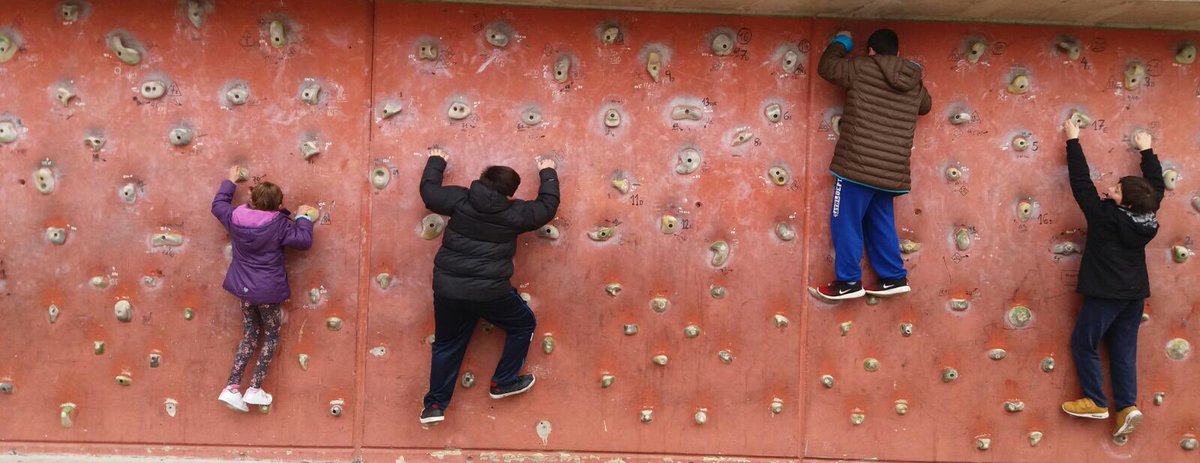 Els grups 5 i 6 avui hem anat al CEM Guinardó. De les moltes instal·lacions que hi ha compten amb un Rocòdrom de paret de 15 m de llarg i 2 m d’alçada amb preses per a la iniciació a l’escalada. Ens ho hem passat molt be pujant i pujant casi fins al cel.