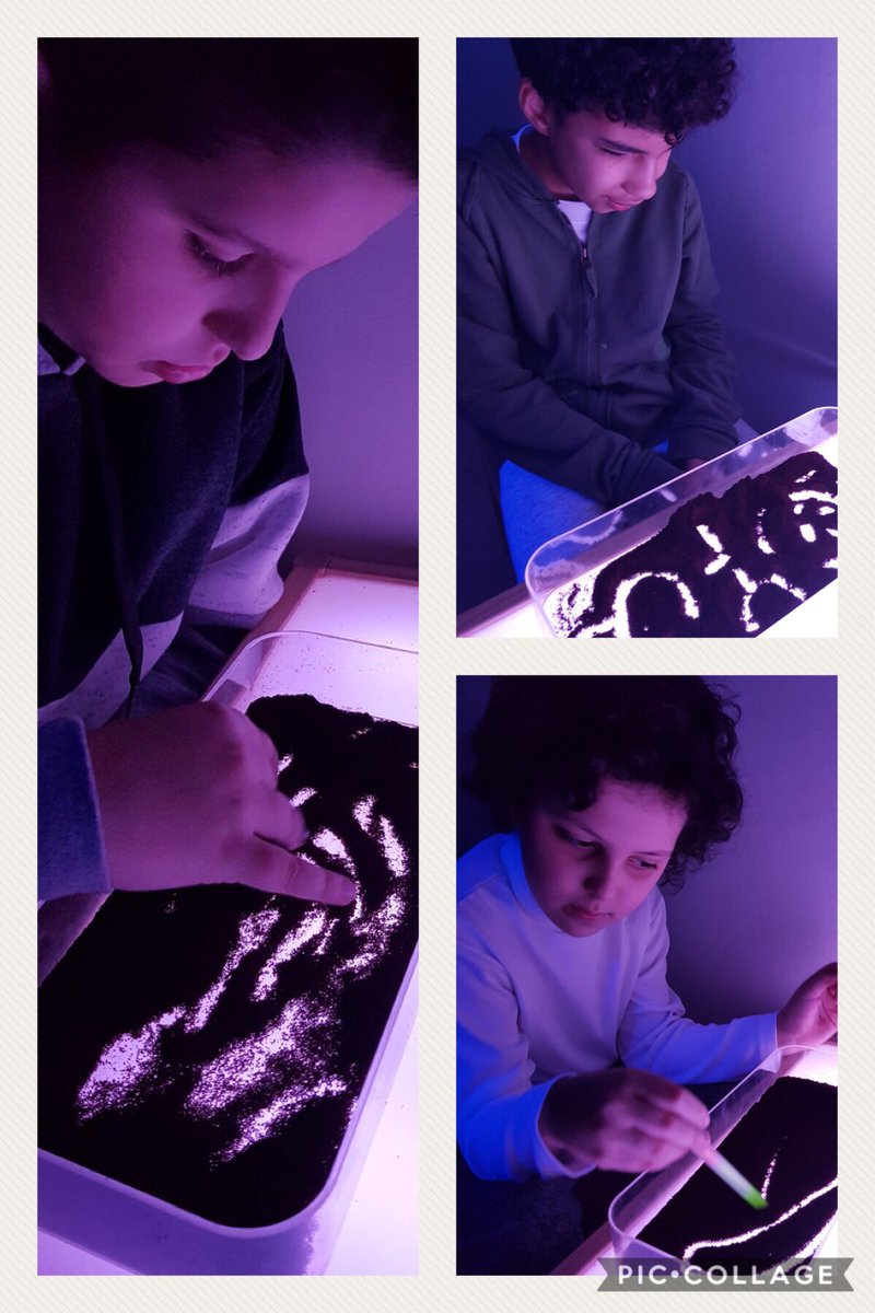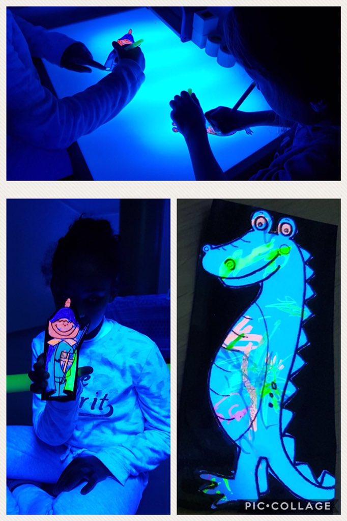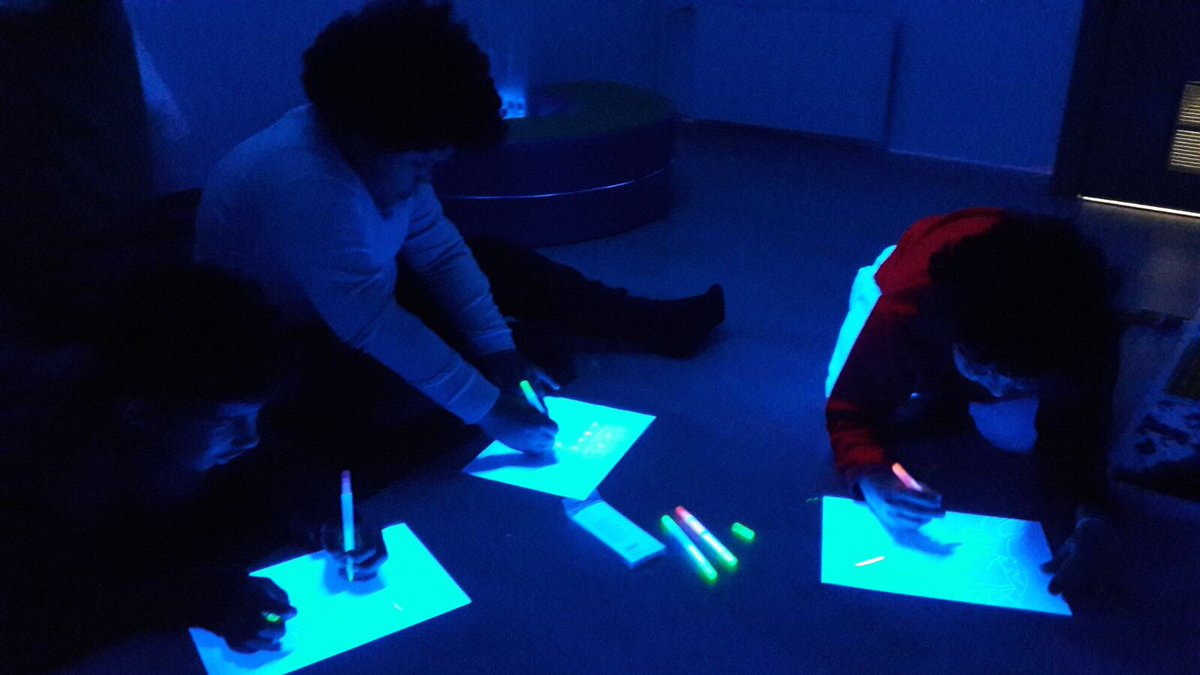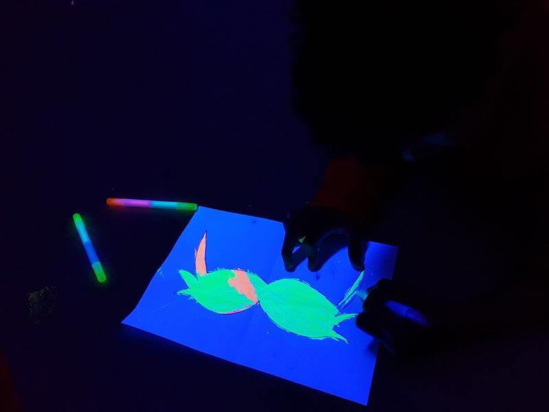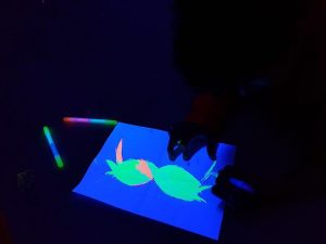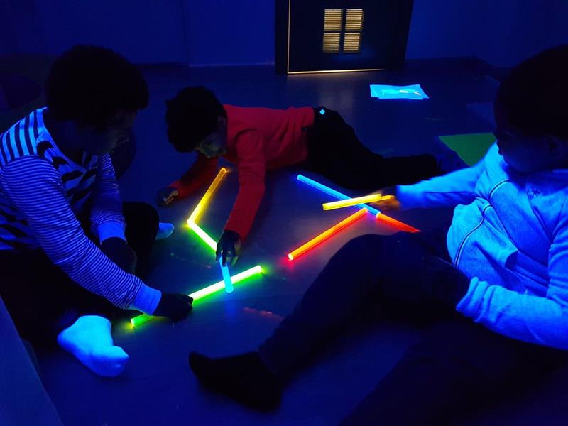 Imatges de Carnaval i geometria, una bona combinació per treballar amb la llum negre a la sala sensorial!