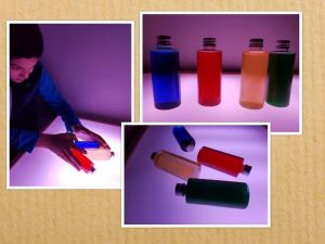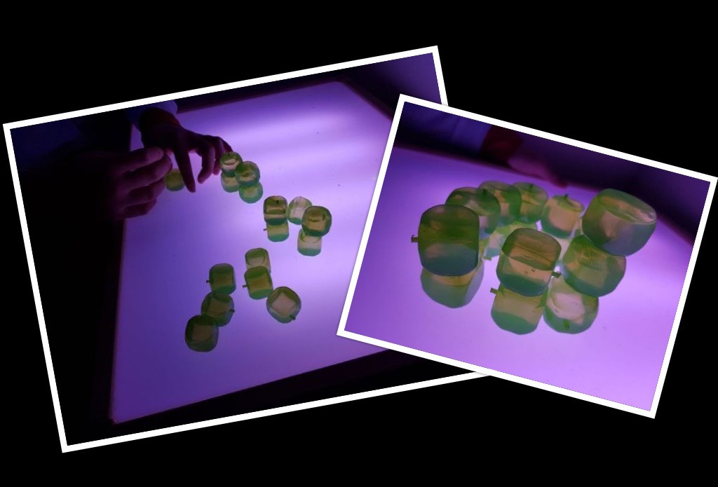 Amb els glaçons de plàstic i la taula de llum fem construccions. |