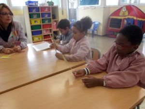 A Educació Infantil fa dues sessions de logopèdia, el que ens proposem és prolongar el temps d’atenció visual i auditiva, que aprenguin a esperar el torn i respectar el dels altres, que comprenguin i utilitzin el vocabulari bàsic i funcional i també el vocabulari de l’entorn.