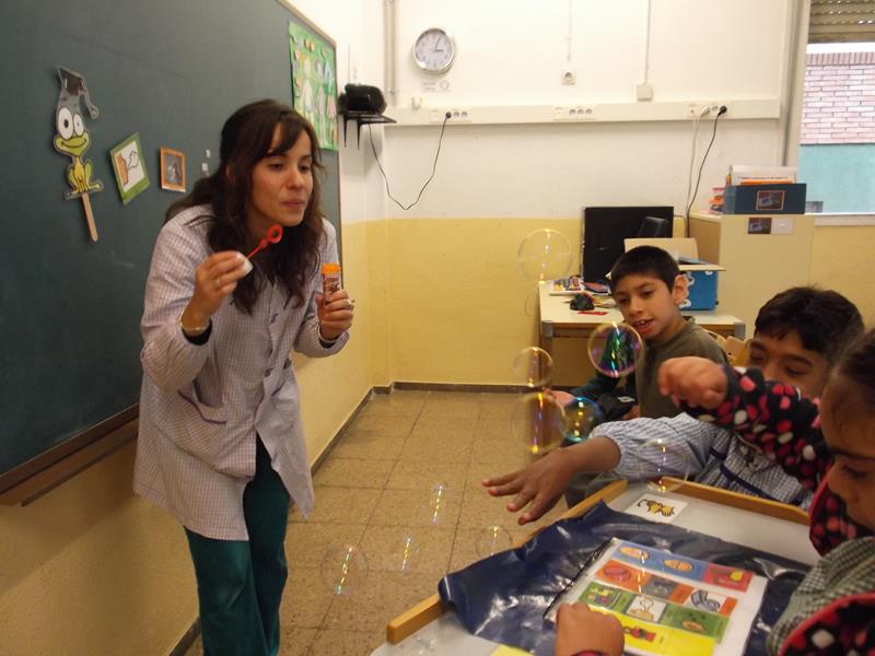 Avui a logopèdia hem explicat entre tots el “Conte de la Rita”. La Rita demana permís a la mama per poder fer coses que li agraden. En aquest cas: “bufar bombolles!”.