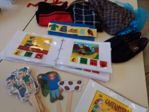 A la comissió de comunicació de l’escola, les logopedes i algunes mestres estem elaborant i adaptant varis contes: conte de la Rita, dels 3 porquets, de la Caputxeta vermella, del globus, de la llebre i la tortuga, de la piscina… Cada conte compta amb diferents formats: presentacions de power point per fer servir a l’ordinador, plafons monogràfics, plantilles per comunicadors de vàries caselles, contes impresos per passar les pàgines, material per explicar el conte de manera vivencial (titelles, objectes reals, imatges…).