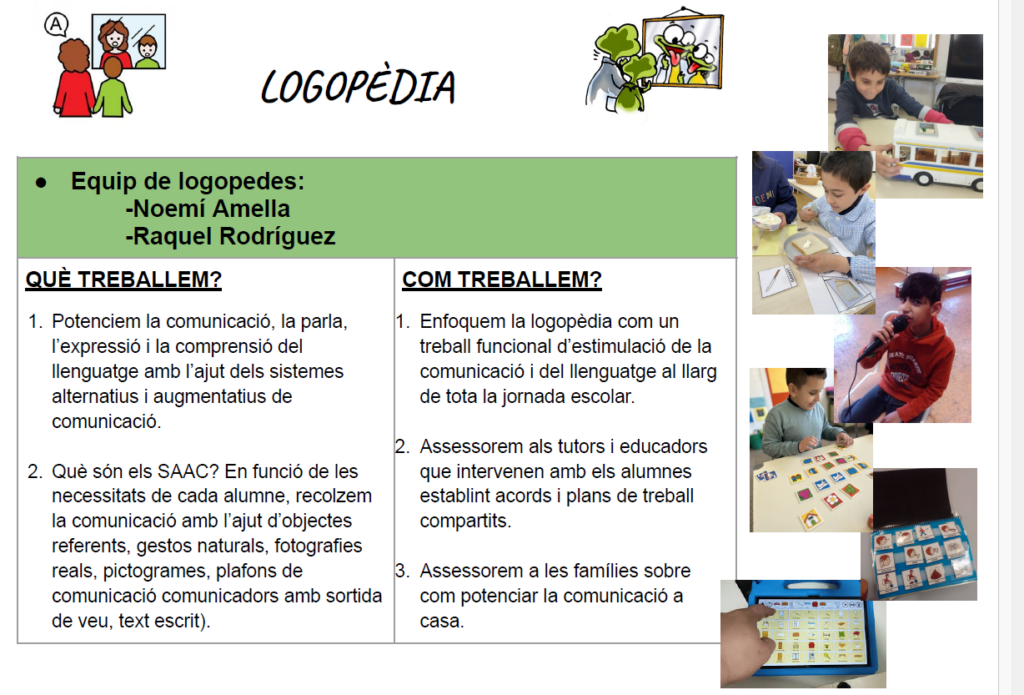 Aquest curs hem engegat les sessions de Logopèdia altre cop a tots els grups d’infantil i primària (després de l’aturada dels cursos anteriors per la pandèmia).