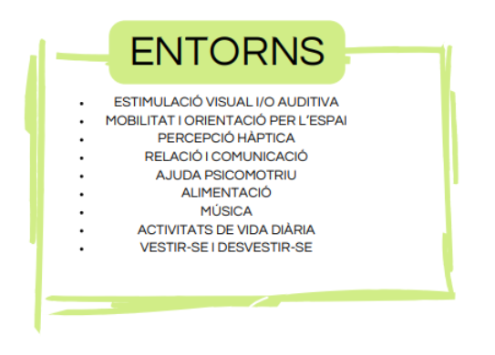El marc d’actuació de les professionals del centre es basa en uns ENTORNS D’APRENENTATGE ESPECÍFICS, aquests configuren els fonaments de la línia d’intervenció pedagògica del centre: